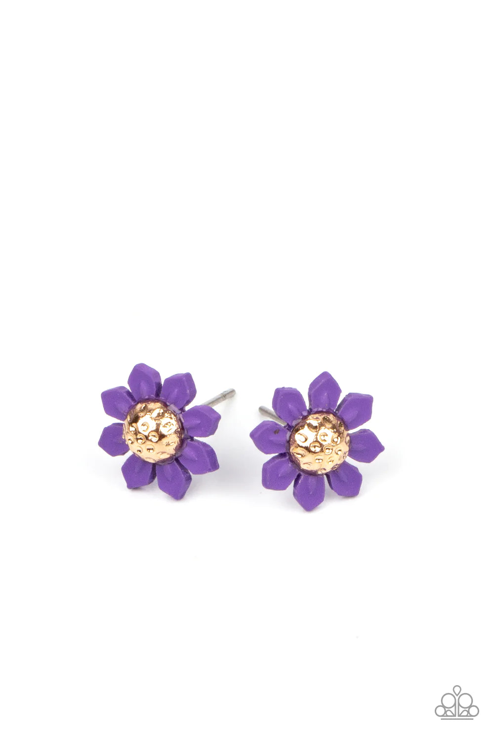 Featuring gold beaded centers, the floral frames vary in shades of yellow, purple, pink, orange, and white. Earrings attach to standard post fittings.